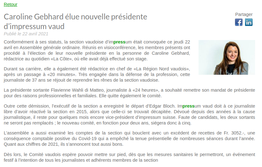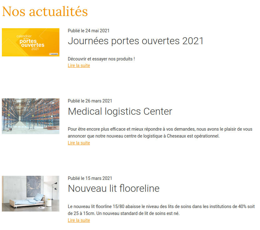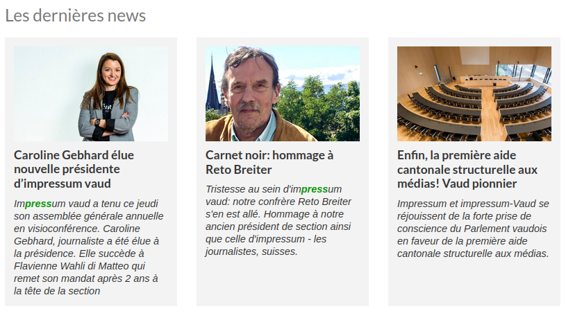 En plus des blocs news et newslist, nous avons aussi développé les blocs actualités et liste d'actualités. Ces blocs sont très similaires, mais leur mise en place est un peu différente. Ils sont utilisés par exemple par notre autre client Impressum Vaud.
