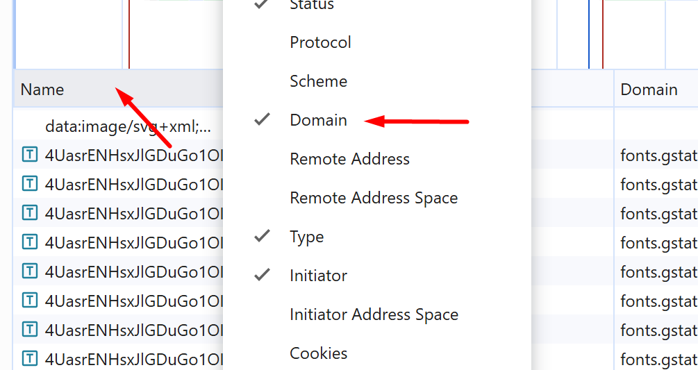 - Regardez la colonne "Domaine" (ou "Host") de la liste réseau, vous pouvez cliquer sur la colonne pour trier.