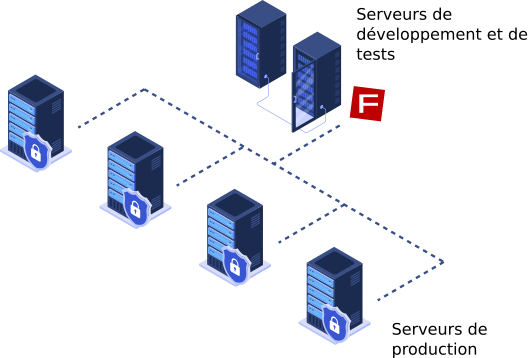 Concrètement, les sites WebForge sont hébergés sur des serveurs physiques différents, mais tous gérés par nos soins. L’application WebForge est dupliquée sur chacun de ces serveurs. Lorsque nous faisons une modification sur notre application (qu’il s’agisse d’une nouvelle fonctionnalité ou d’un correctif), nous la testons d’abord sur notre serveur dédié aux tests, et si les résultats des tests sont satisfaisants, nous propageons la modification sur tous nos serveurs de production. Ainsi, en quelques minutes, la modification est en place pour l’ensemble des sites de nos clients.