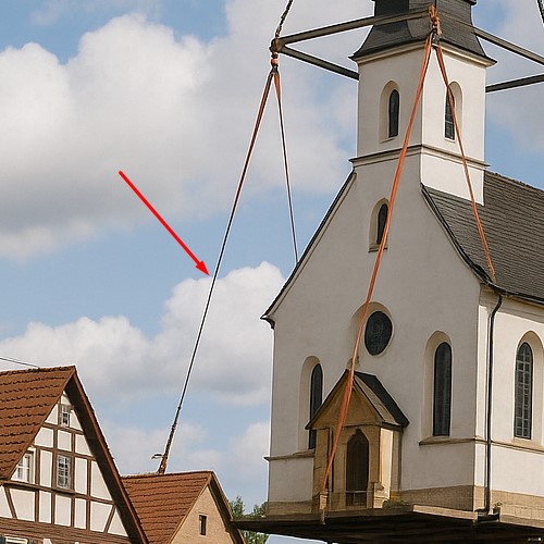 Est-ce qu'en voyant l'image la première fois, vous vous êtes posé la question si le fait de fixer l'église par ses gouttières allait permettre de supporter son poids?