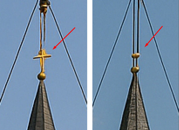 La disparition de la croix, un changement de style de fenêtre ou plus grave la suppression d'une partie de la cabine de la grue.