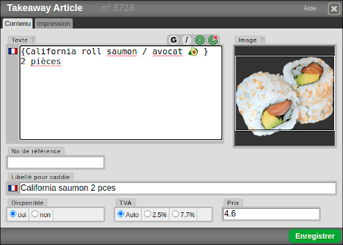 On utilise une simple fenêtre d'édition pour ajouter un article au shop en ligne: